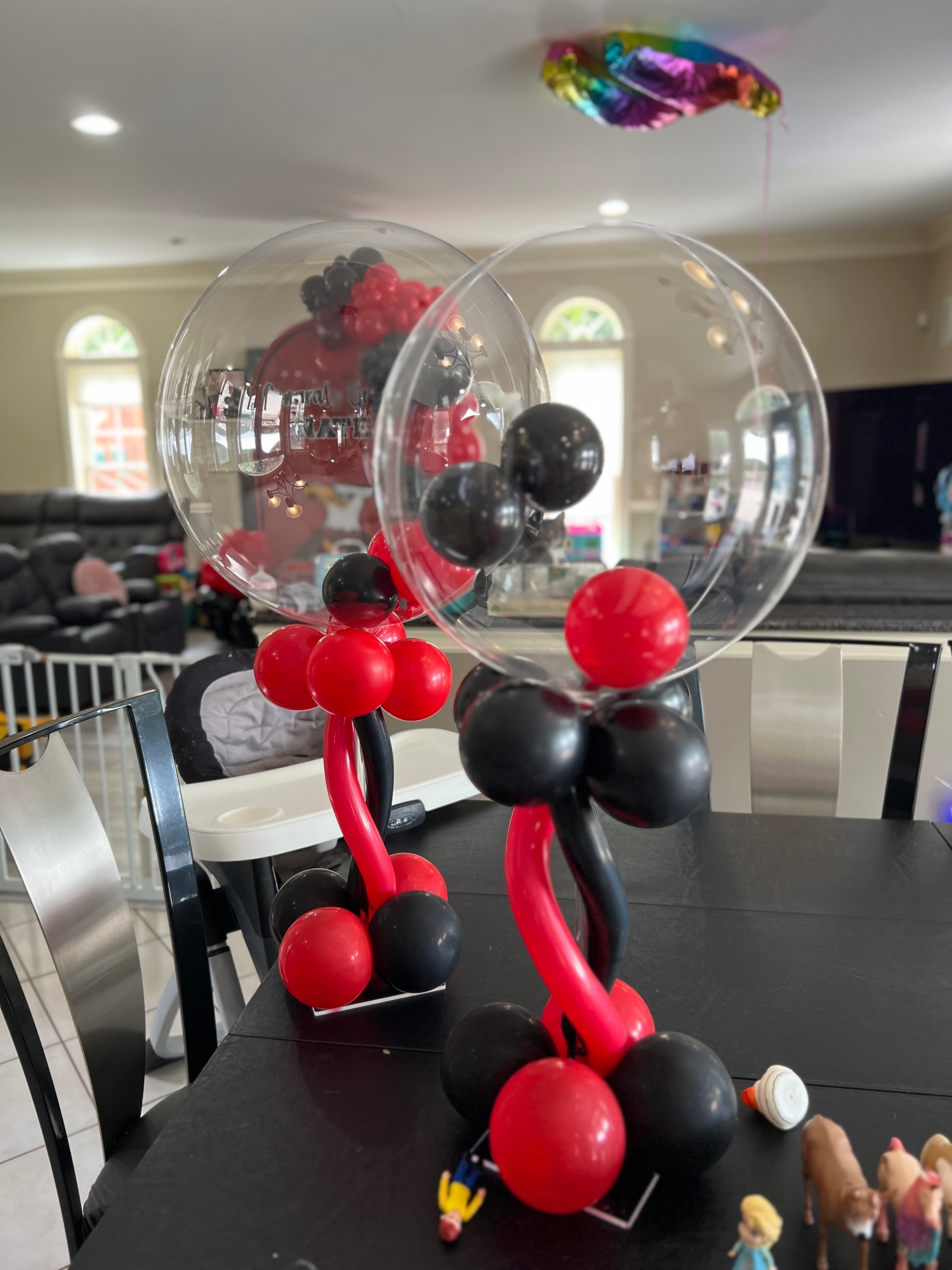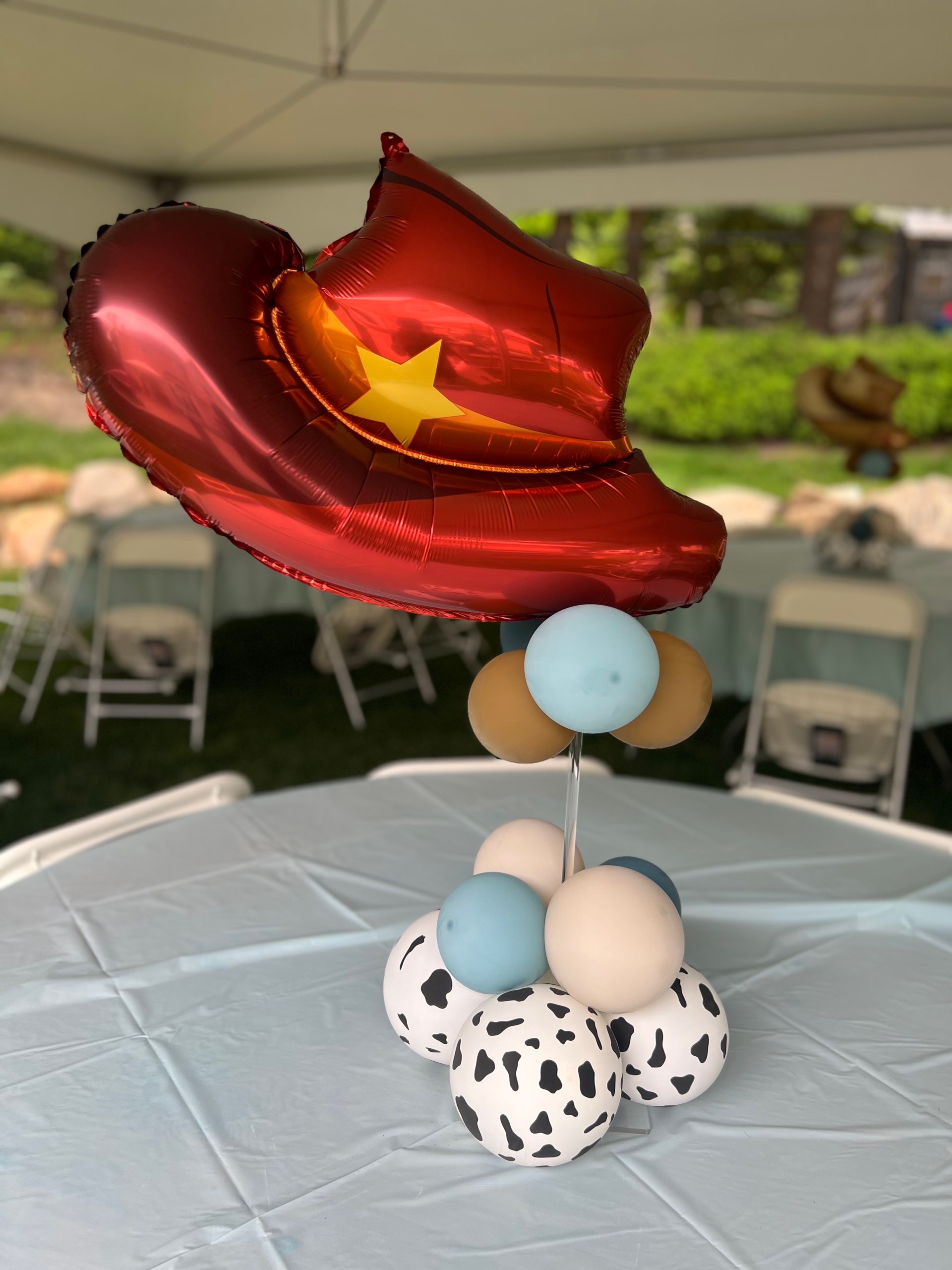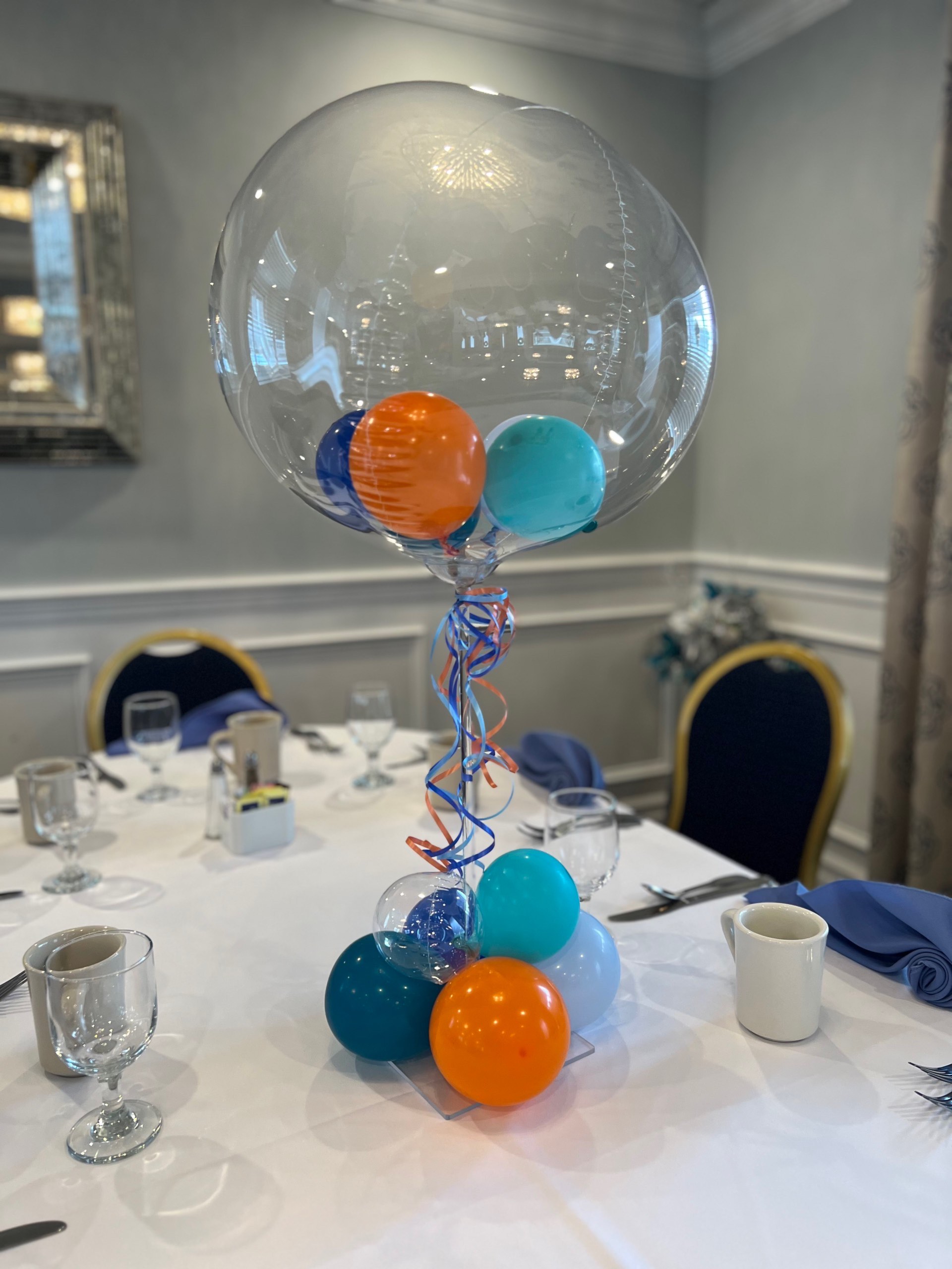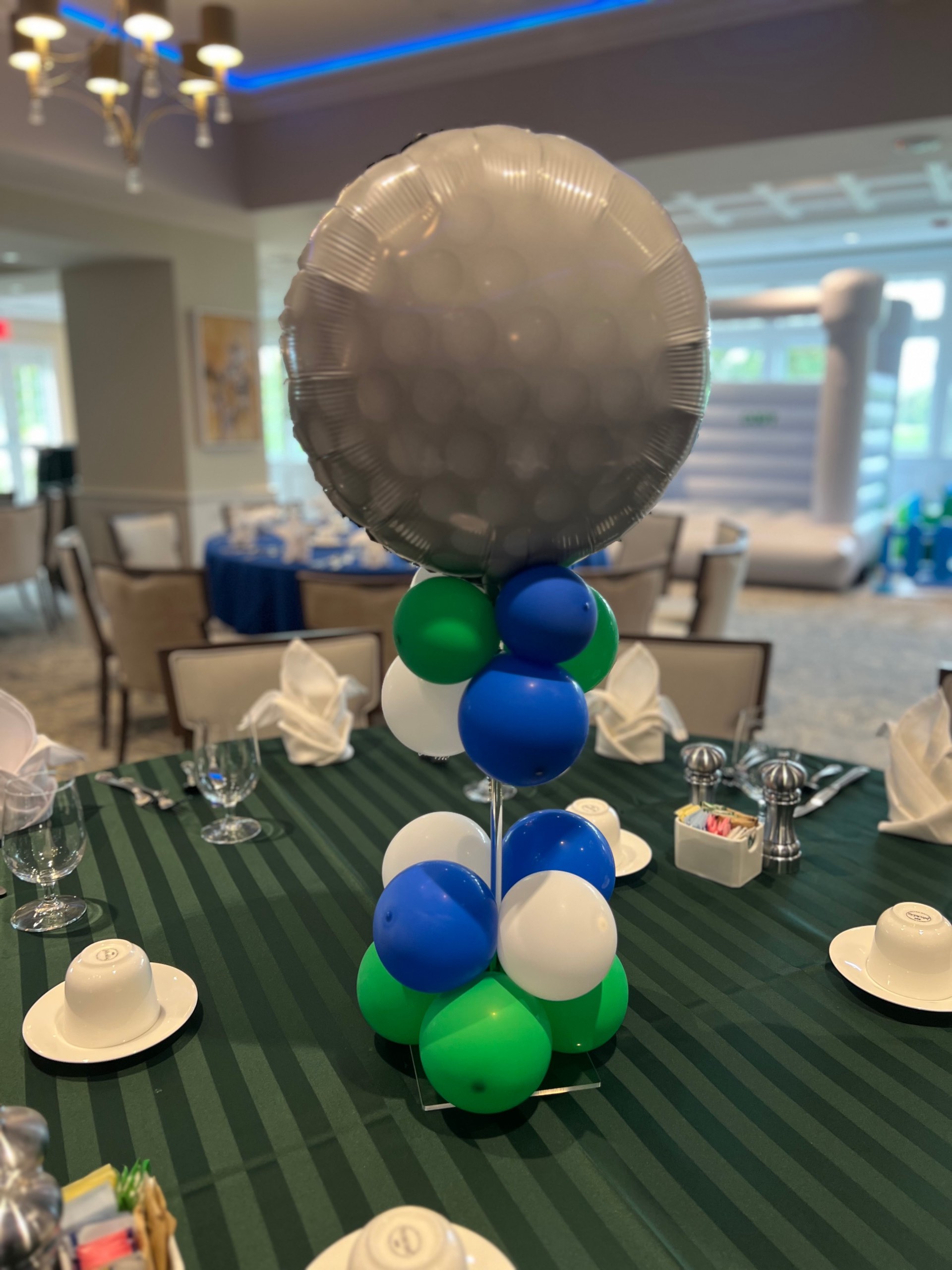 Themed Balloon Centerpieces Themed Balloon Centerpieces Balloon Centerpieces -(Add on) will match your theme/colors balloon arrangement on an acrylic stand rental start at $35.00 /each contact us for custom idea/design See Portfolio See Portfolio See Portfolio Our Portfolio Click image to view full gallery mode to see all images