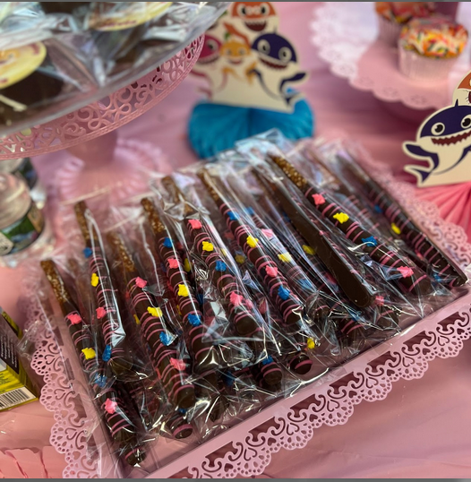 Themed Treats Themed Treats Themed Treats -(Add on) A local vendor Amy will make themed treats for your party; they not only look amazing but also taste delicious! Any theme / photo design can be accommodated! Oreos with image or decor $30/doz Cake pucks with image or decor $40/doz Chocolate covered pretzels $18/doz Cake Pops - $40/doz (2 dozen minimum) Chocolate rice krispy treats - $20/doz (2 dozen minimum) Chocolate frame with custom image krispy treats - $10/each See Portfolio See Portfolio See Portfolio Our Portfolio Click image to view full gallery mode to see all images